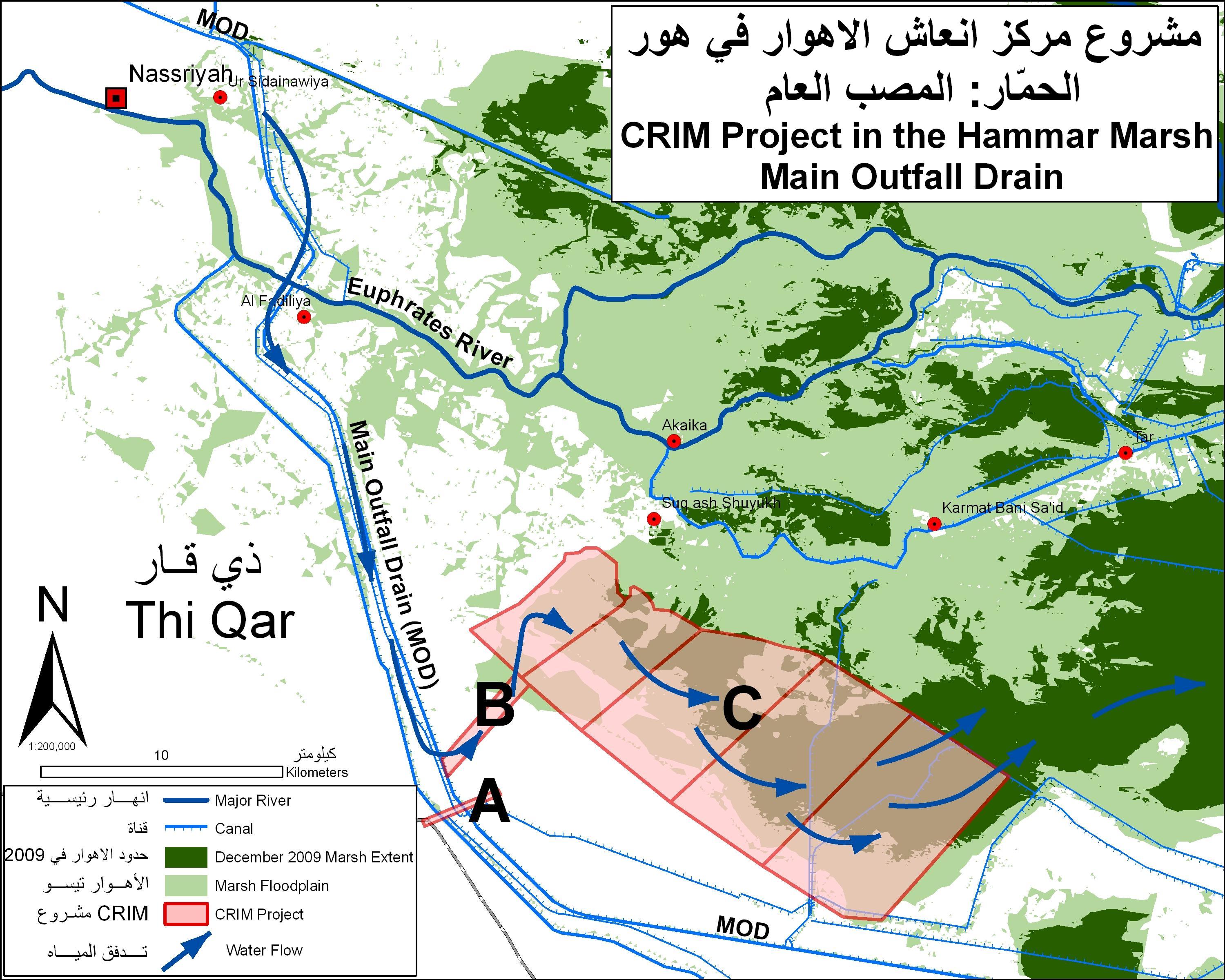 | dc.description | CRIM (Center for the Restoration of the Iraqi Marshes, Ministry of Water Resources Iraq), has a project as of winter 2009 / 2010 to divert MOD water to the Hammar marsh. The water will be treated in five basins before being released into the marsh. Scale 1:200,000. | en |