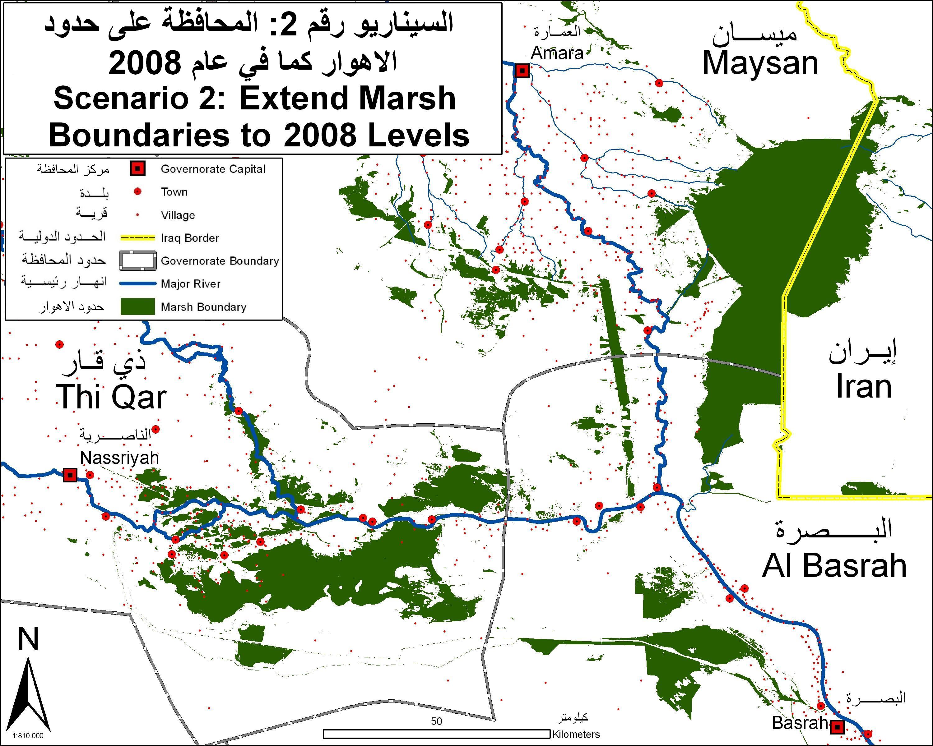 Scenario 2 : extend marsh boundaries to 2008 levels.